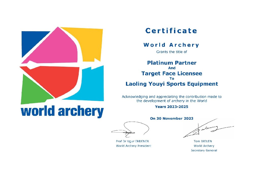 國際射箭聯(lián)合會-白金合作伙伴、國際射箭聯(lián)合會認證器材、中國射箭協(xié)會審定器材